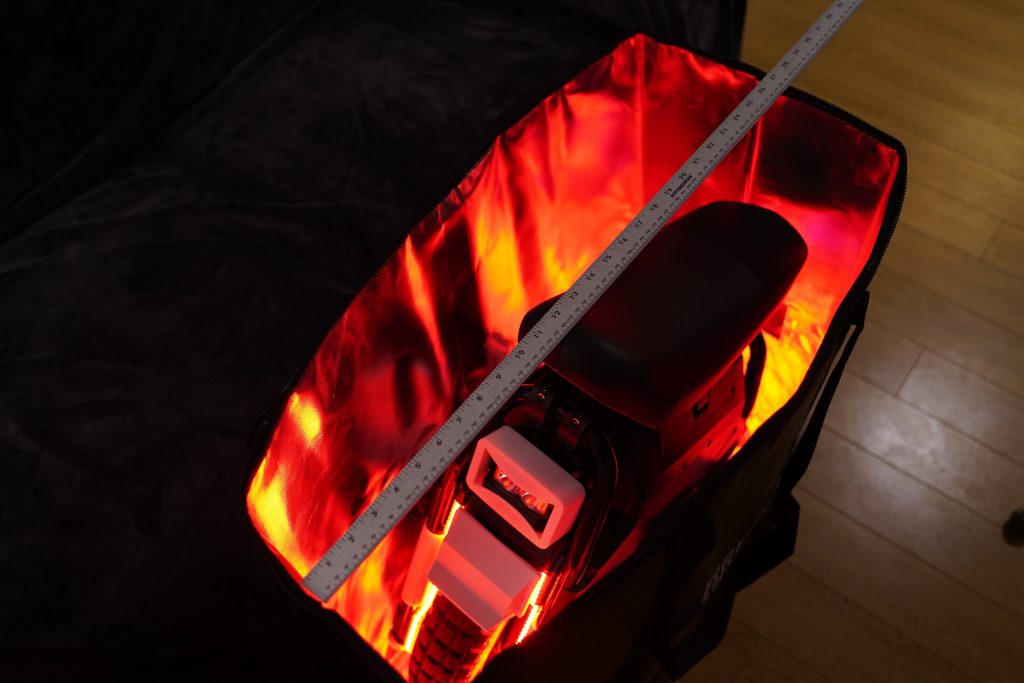 an e-bike battery laying inside of a compact firesak.